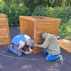 - Первый кубик: вместительная песочница с бортиками (опционально: с крышкой)