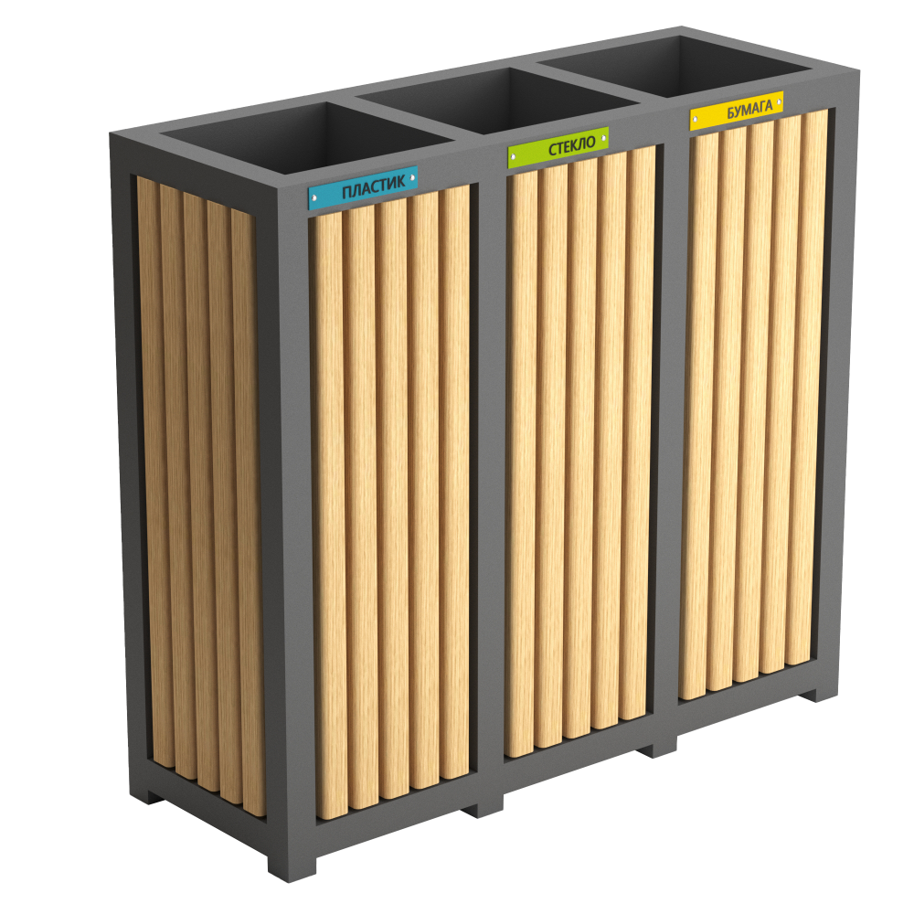 Заботясь об окружающей среде наша компания создала современные урны для сортировки мусора и приложила все усилия, чтобы сортировка отходов была легкой и приятной. Урна Альтас Трио имеет современный дизайн и эстетический вид, что позволяет прекрасно вписываться в местах общего пользования, как торговые центры, вокзалы, станции метро, гостиничных комплексах, курортных зонах. Урна Альтас Трио изготовлена из черной или нержавеющей стали, которую с двух сторон закрывают доски из дерева. Внутренняя емкость выполнена из листовой оцинкованной стали.